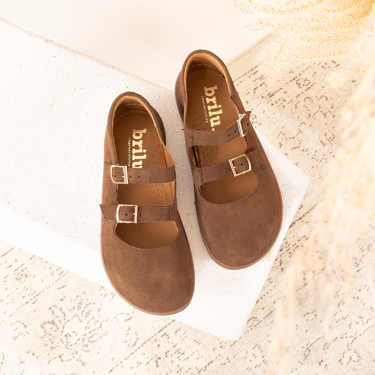 Skórzane zamszowe baleriny barefoot Montana brązowe