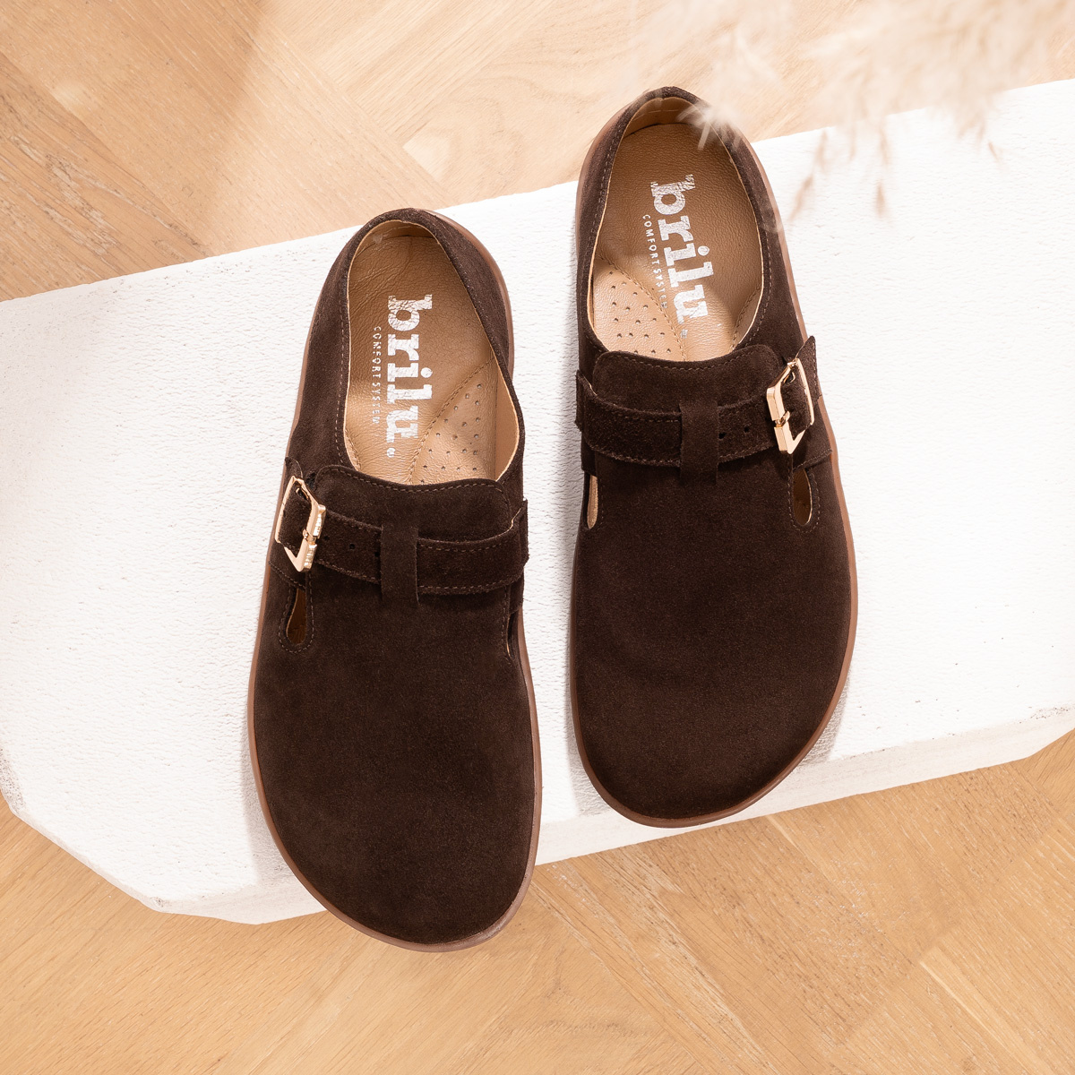Zamszowe półbuty z klamrą barefoot Megan czekoladowe