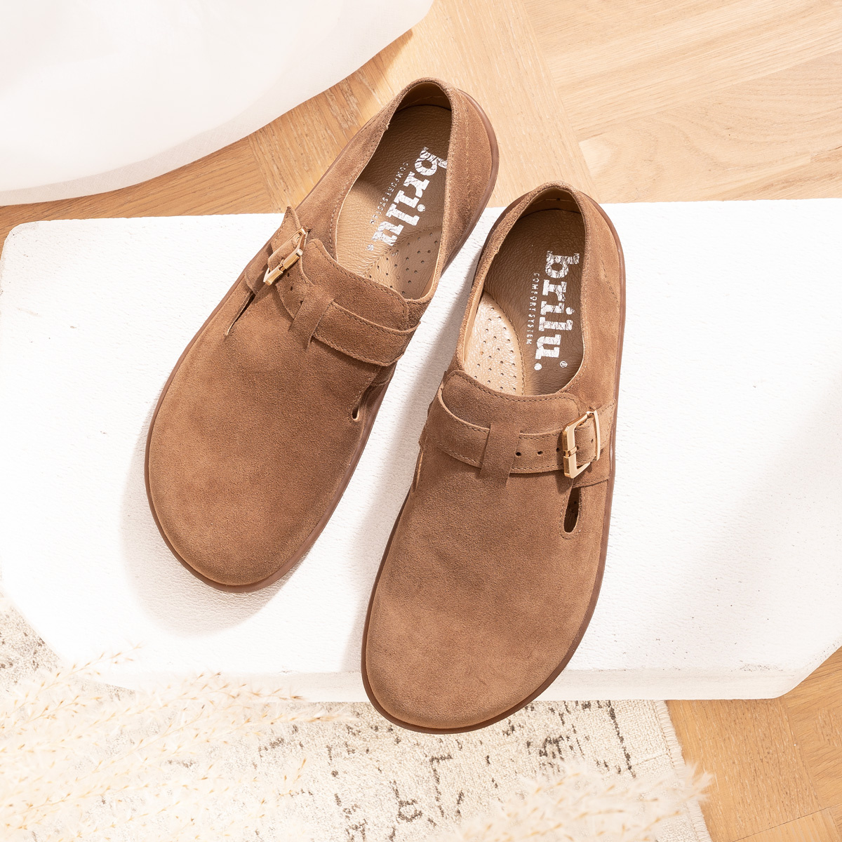 Zamszowe półbuty z klamrą barefoot Megan brązowe