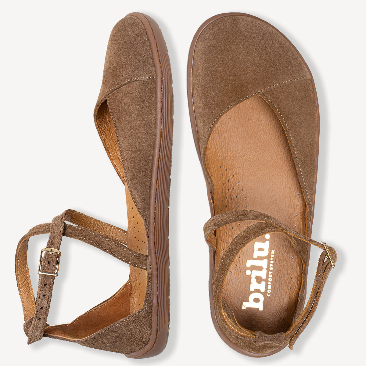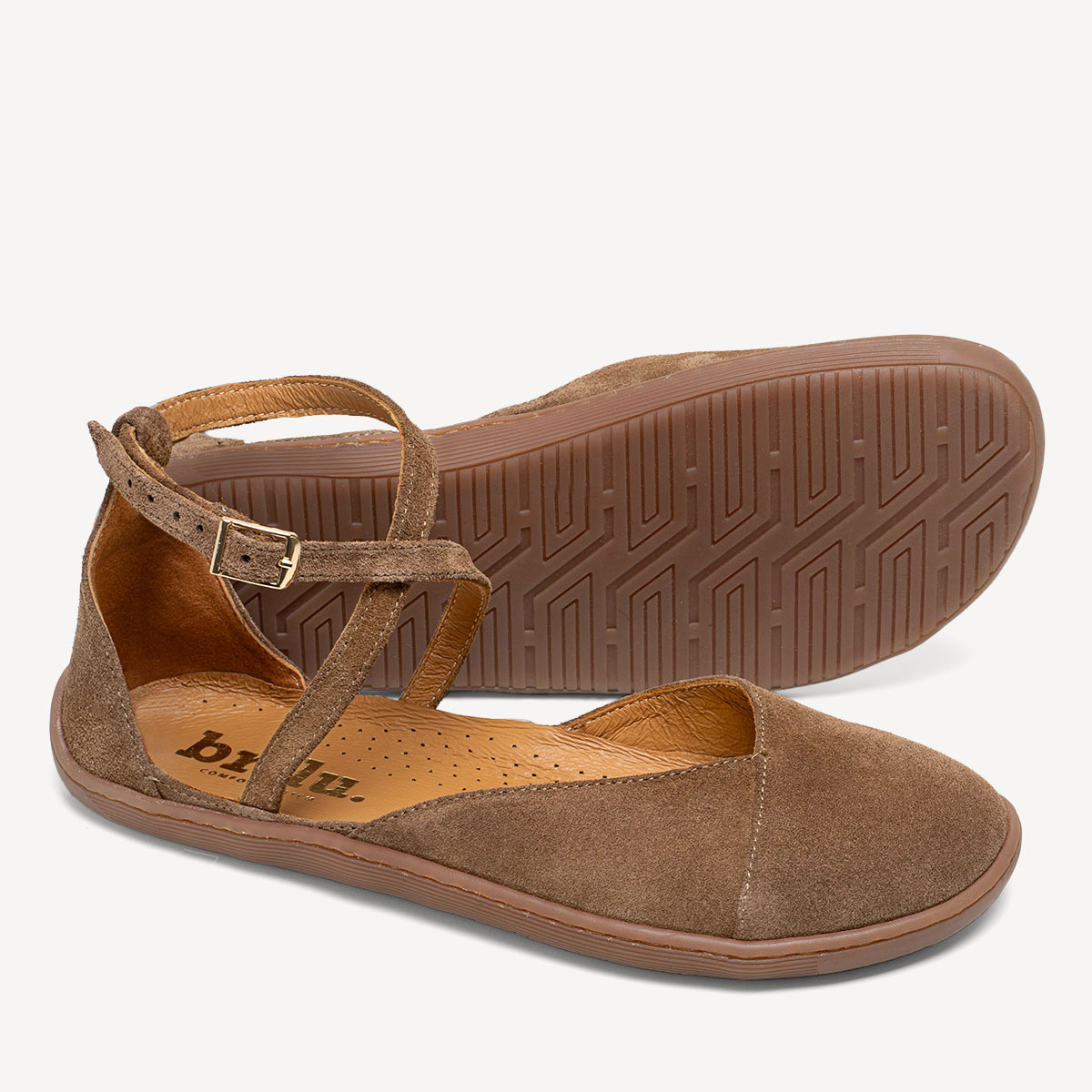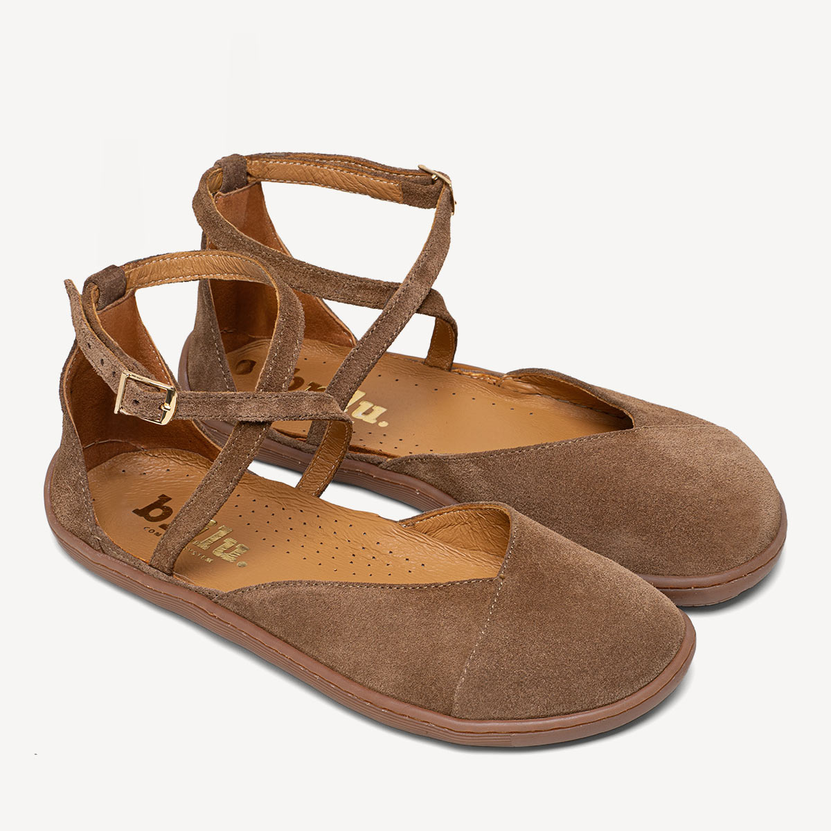 Zamszowe baleriny z paskami barefoot Indie brązowe