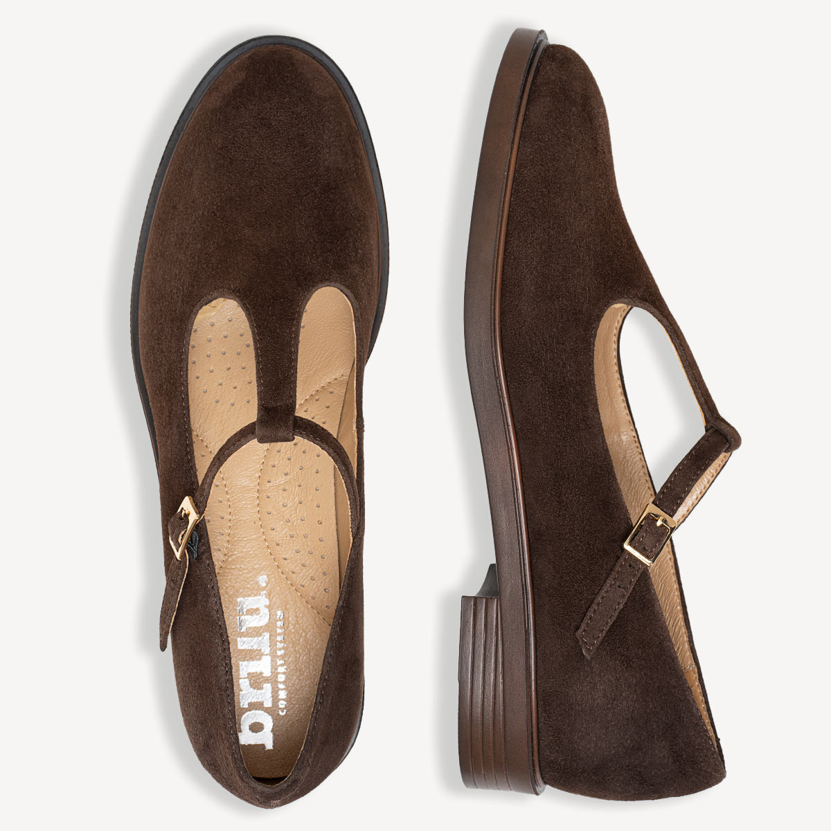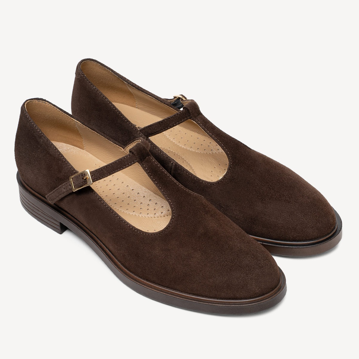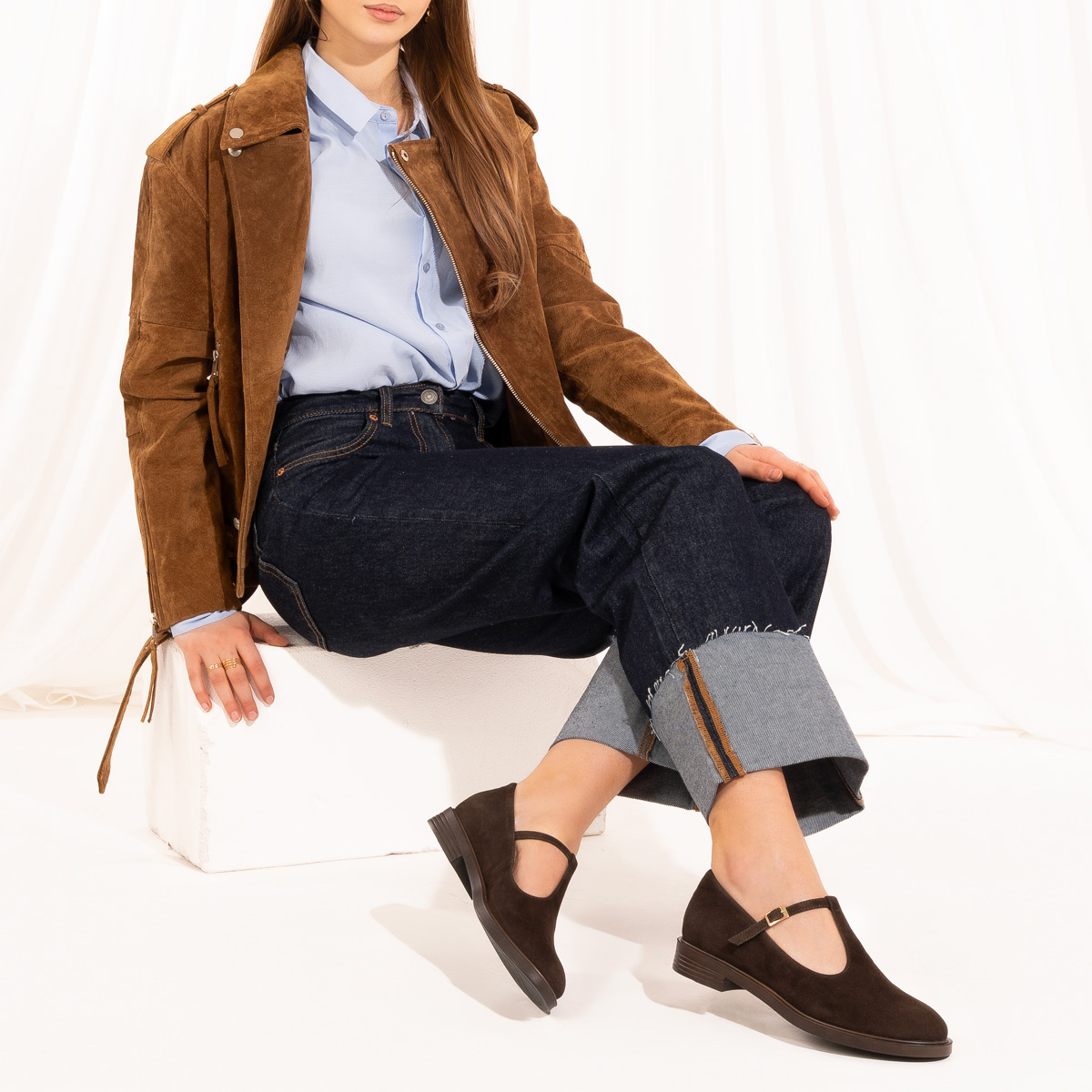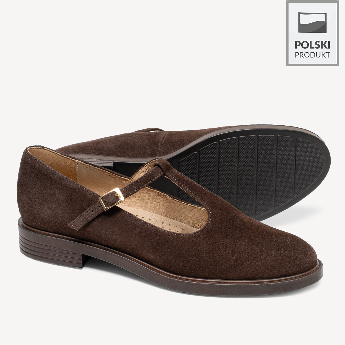 Zamszowe półbuty damskie z paskiem Samara brązowe