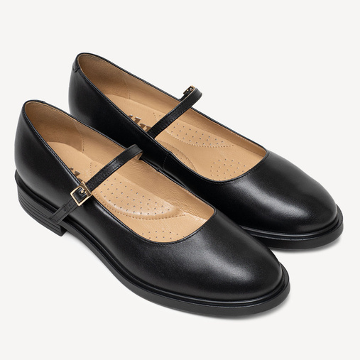 Skórzane półbuty damskie z paskiem Cindy czarne