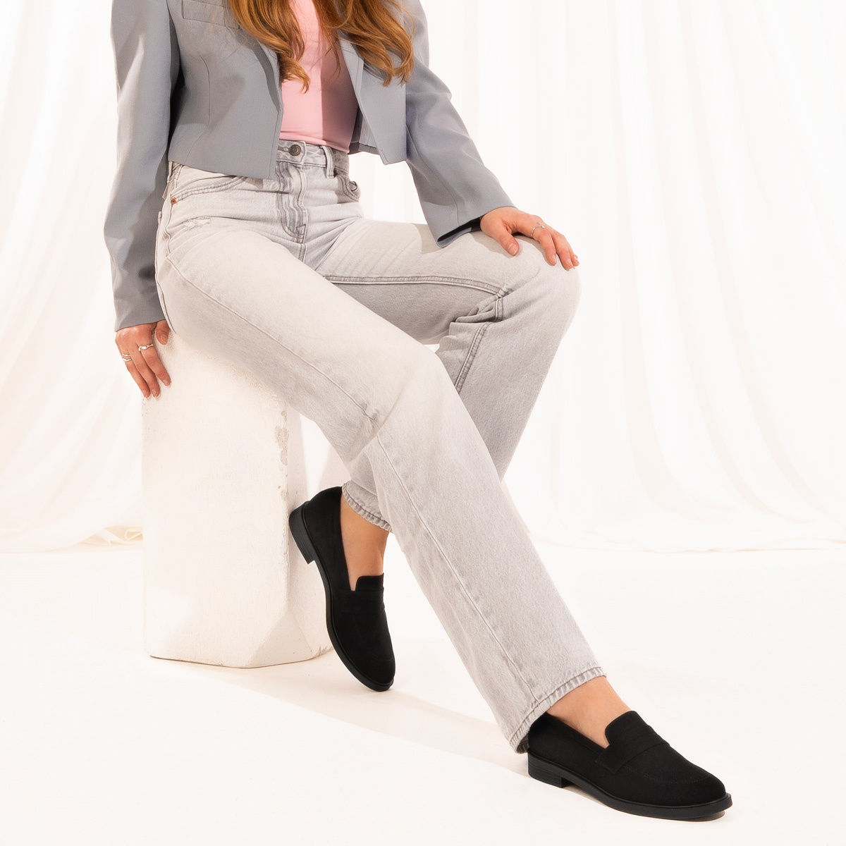 Zamszowe wsuwane półbuty damskie Melanie czarne