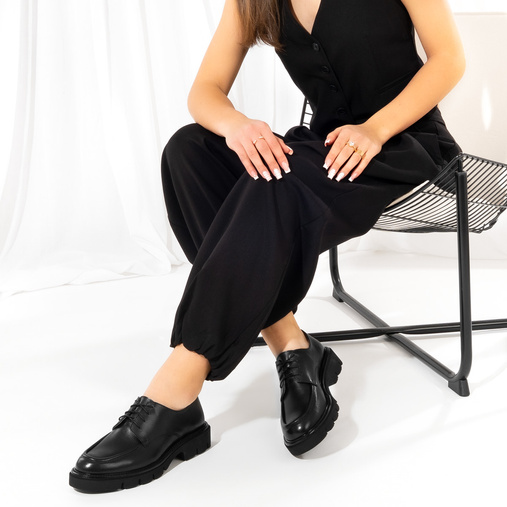 Skórzane sznurowane półbuty damskie Luxury czarne