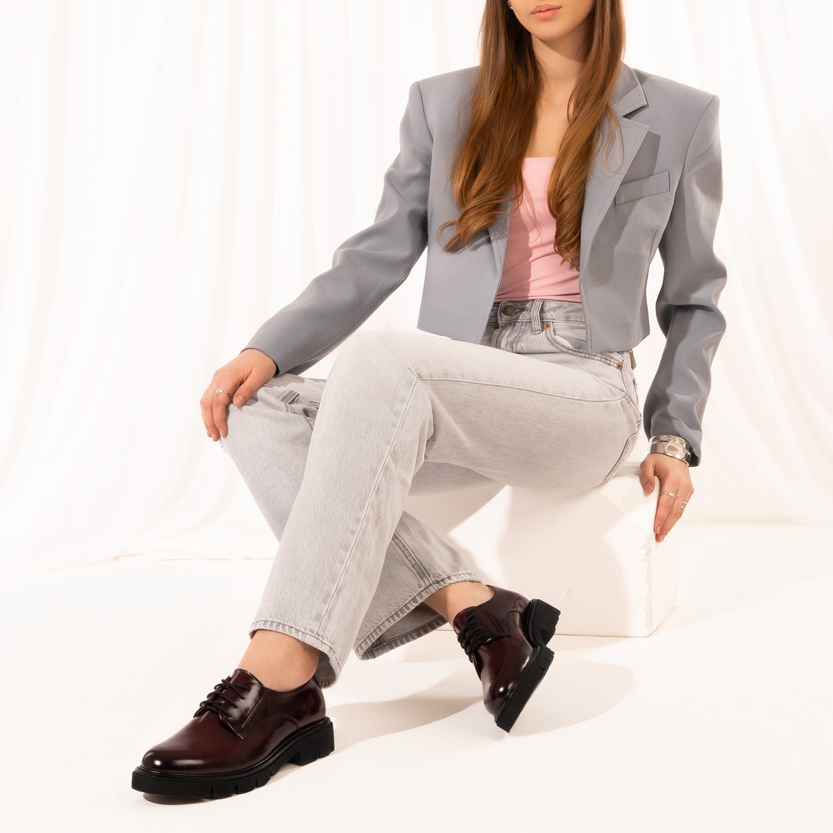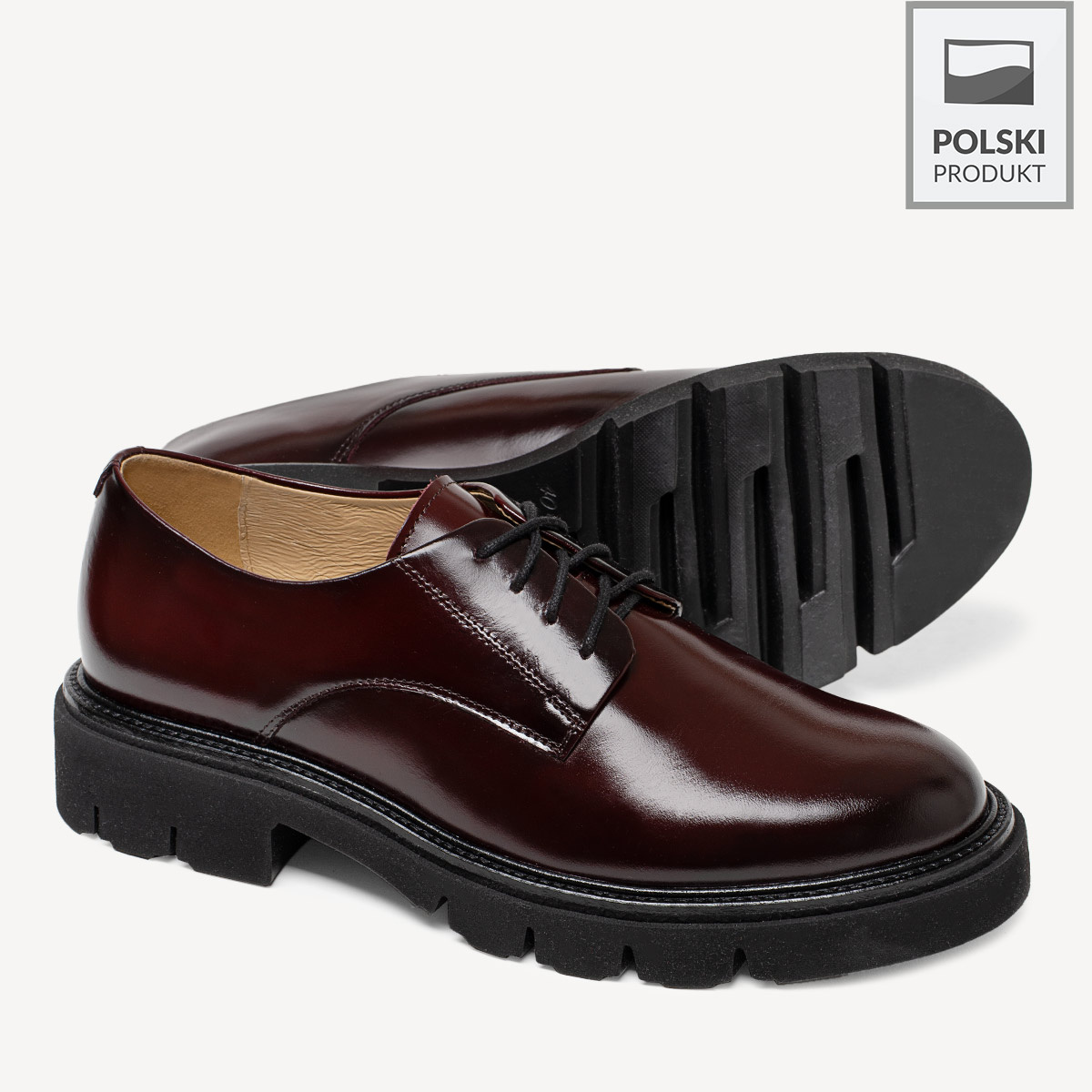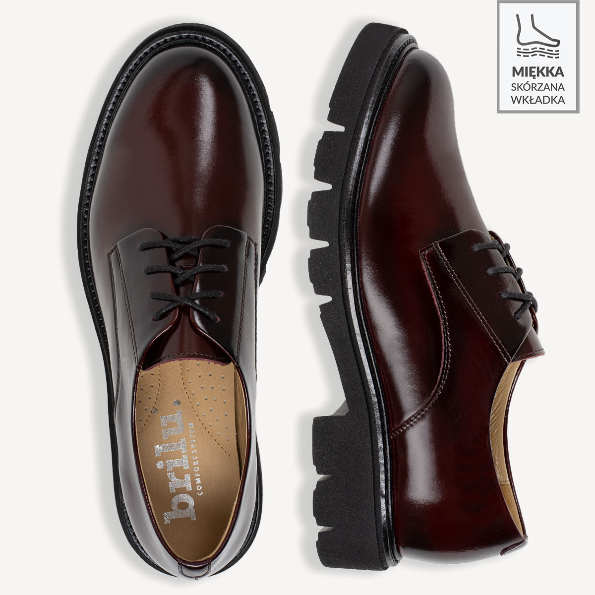 Skórzane sznurowane półbuty damskie Indigo bordowe