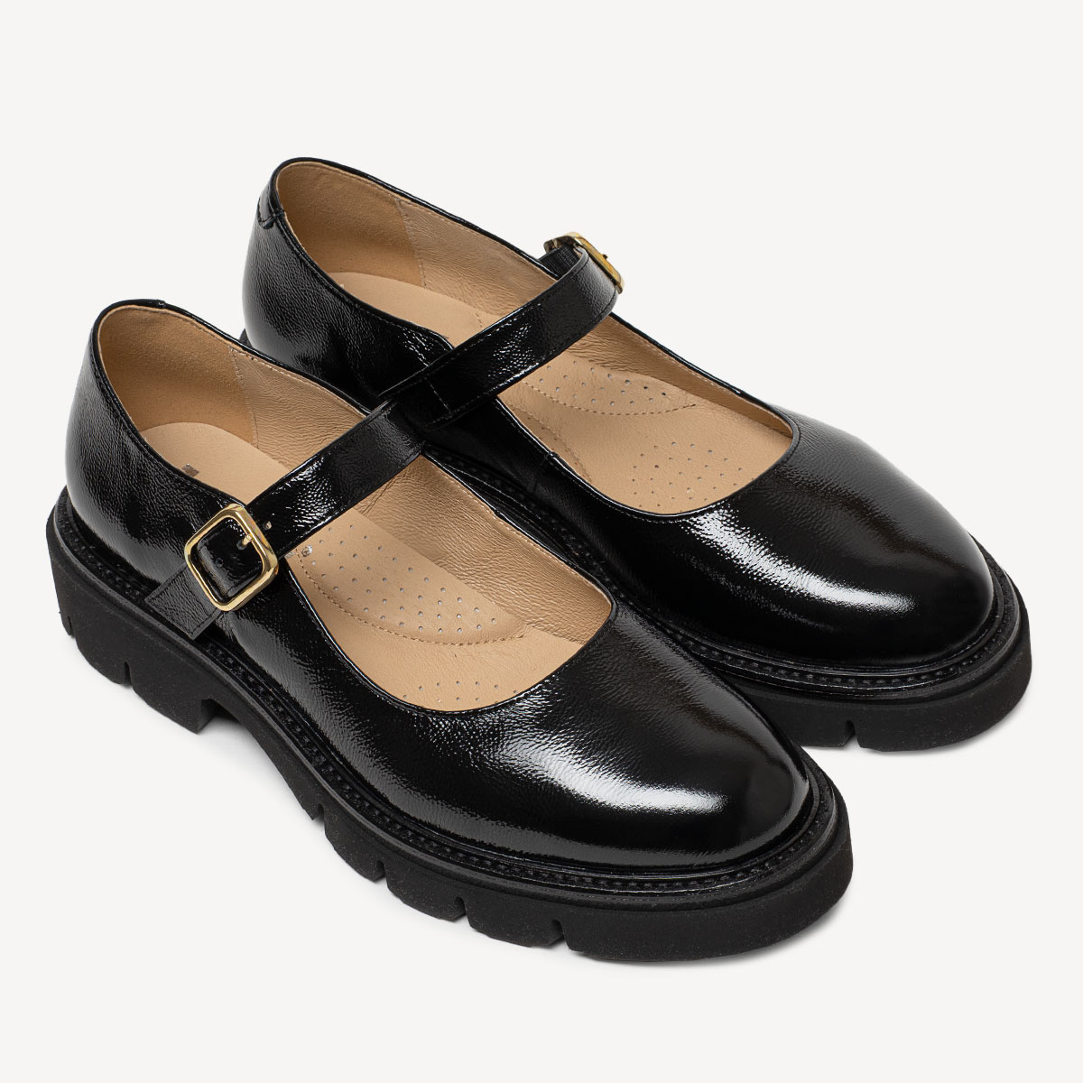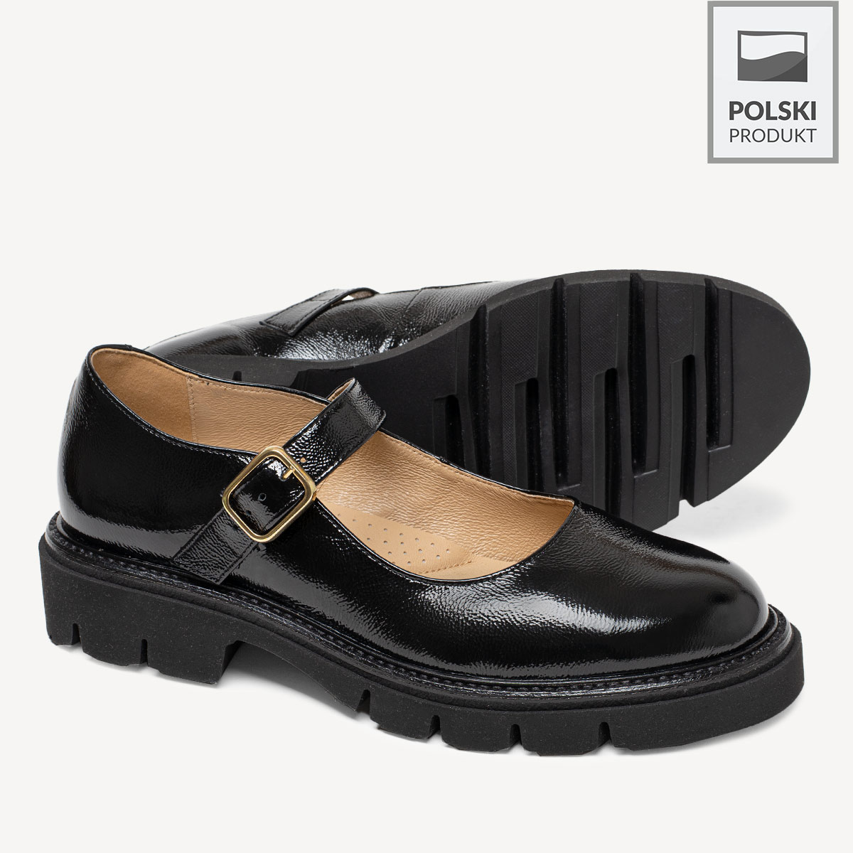Skórzane lakierowane półbuty damskie z klamrą Merida czarne
