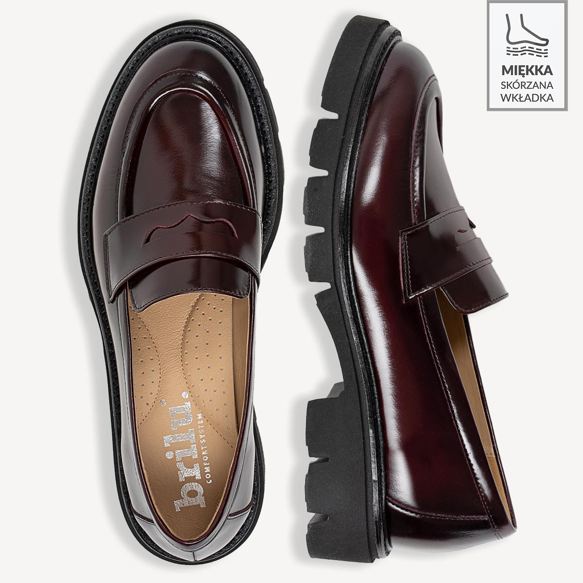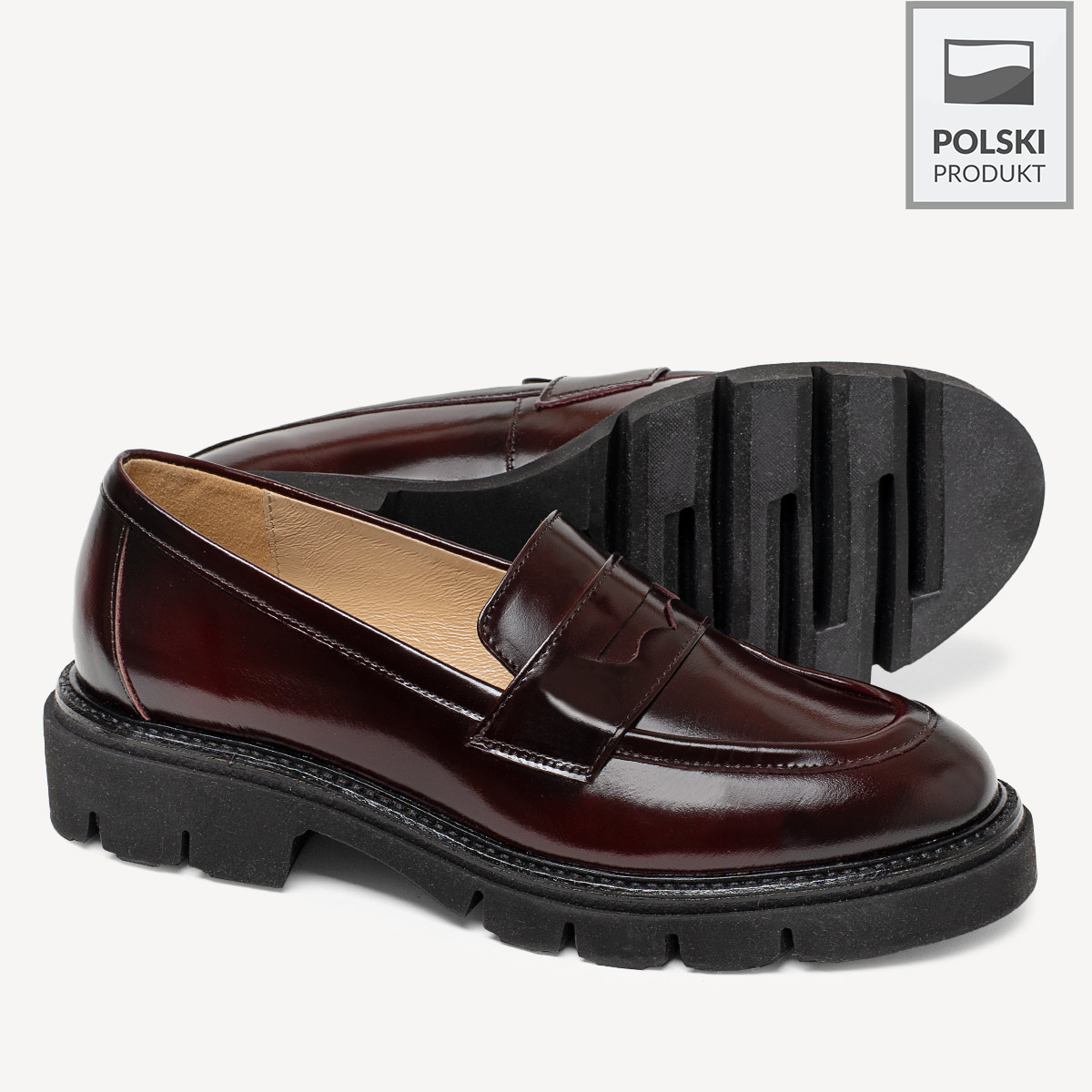 Skórzane wsuwane półbuty damskie Celeste bordowe