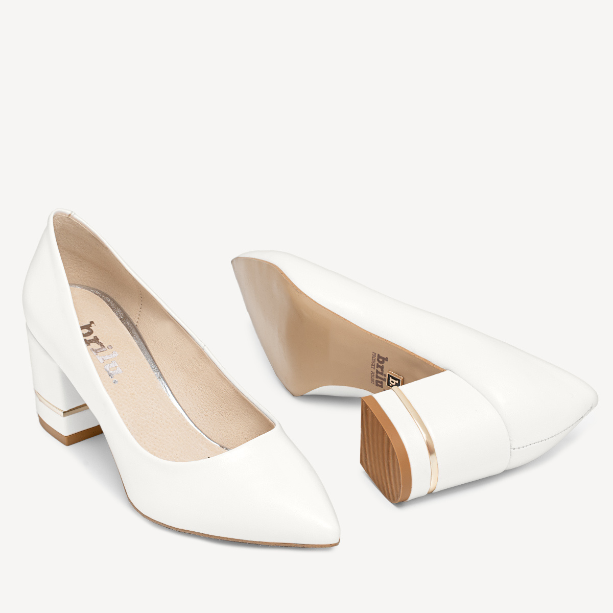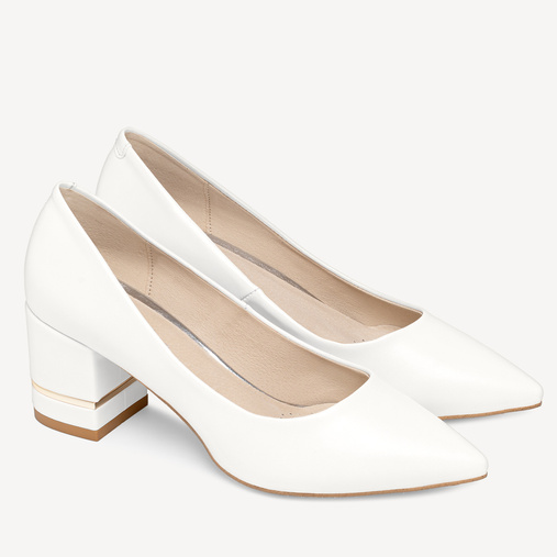 Model Felicia to białe czółenka ślubne stworzone dla kobiet, które poszukują równowagi między elegancją a wygodą. Łączą ze sobą wysokiej jakości materiały z idealnie wyprofilowaną linią buta. Stabilny obcas o wysokości 6 cm, ozdobiony złotą wstawką, dodaje całości blasku, a wnętrze zostało zaprojektowane z myślą o Twoim komforcie – miękka, skórzana wkładka pozwoli na swobodne poruszanie się przez cały dzień, zapewniając uczucie lekkości nawet podczas wielu godzin spędzonych na nogach.