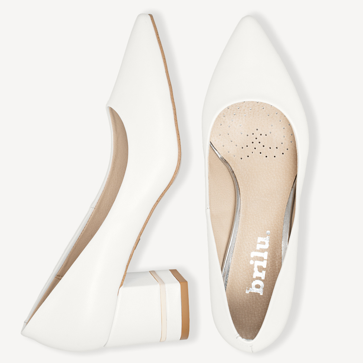 Klasyczna forma w nowoczesnym wydaniu sprawia, że białe czółenka na słupku Felicia doskonale odnajdą się zarówno w stylizacjach ślubnych, jak i wieczorowych lub koktajlowych. Felicia to czółenka, które subtelnie uzupełnią Twoje kreacje, wprowadzając do nich delikatność i klasę.