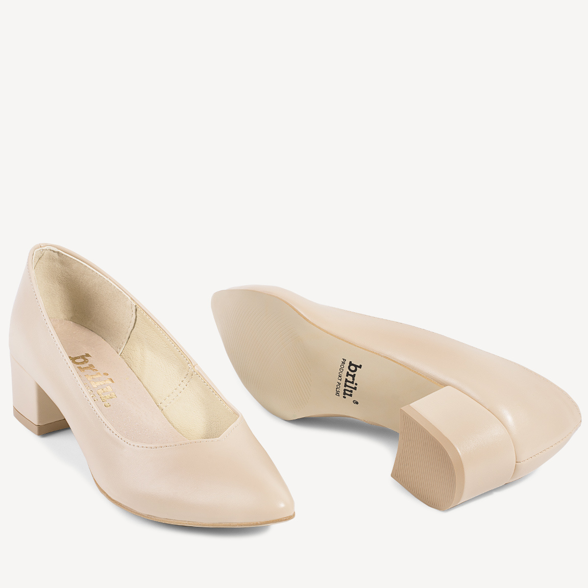 Czółenka na niskim słupku z wycięciem w szpic Bridget beżowe
