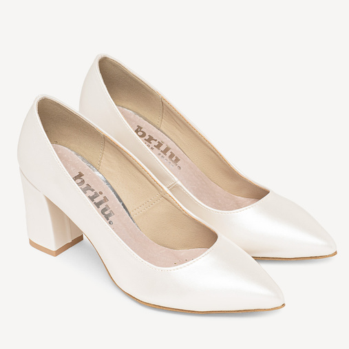 Ślubne perłowe czółenka na słupku Fanny ivory