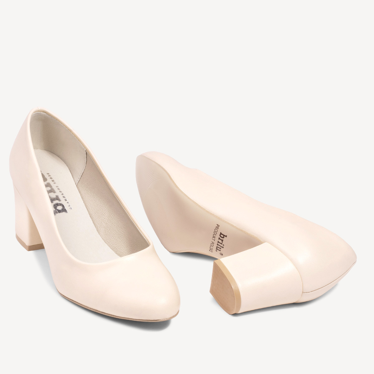 Licowe czółenka na niskim słupku Malvina cieliste ecru