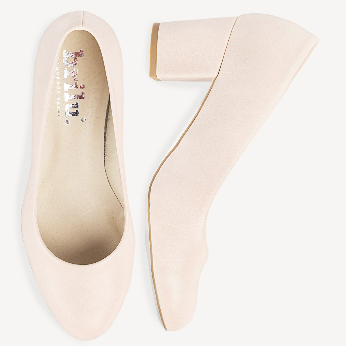 Opinie o Licowe czółenka na niskim słupku Malvina cieliste ecru
