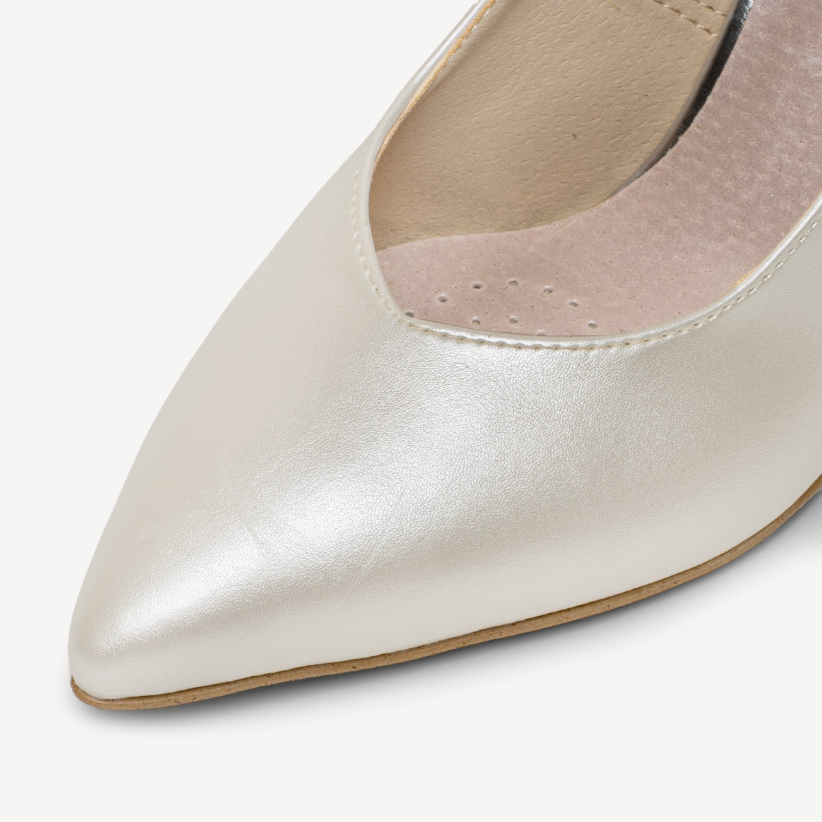 Ślubne perłowe czółenka na słupku Stacy ivory