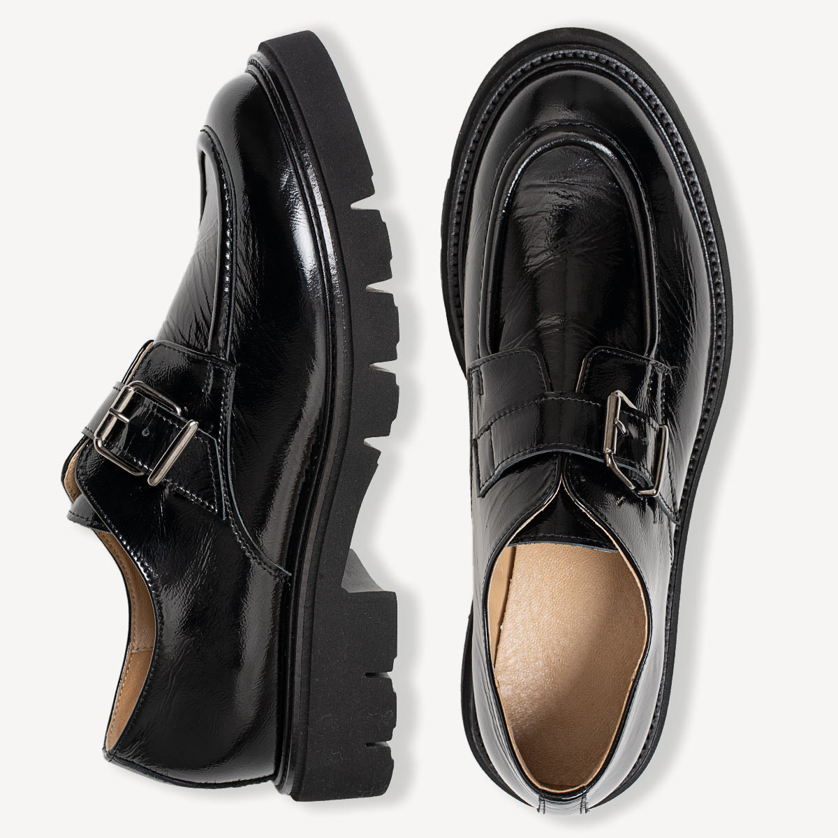 Czarne półbuty damskie Ruthe to połączenie elegancji i funkcjonalności, idealne dla kobiet, które nie chcą wybierać między stylem a wygodą. Staranne wykonanie z wysokiej jakości włoskiej skóry naturalnej oraz przemyślana konstrukcja sprawiają, że skórzane półbuty z klamrą Ruthe zapewnią swobodę ruchu oraz pewność siebie na każdym kroku. Płaski obcas o wysokości 4 cm gwarantuje komfort noszenia, a charakterystyczny pasek z klamrą dodaje butom wyrazistego akcentu. Półbuty z klamrą Ruthe świetnie sprawdzą się zarówno w codziennych zestawach z jeansami, jak i w połączeniu ze spódnicami lub sukienkami – to najlepszy wybór dla miłośniczek stylu grunge i kobiet stawiających na mocniejsze dodatki.