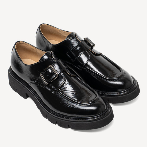 Skórzane półbuty damskie z klamrą Ruthe czarne