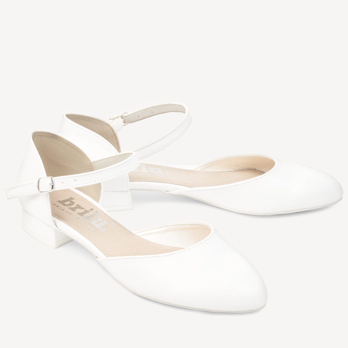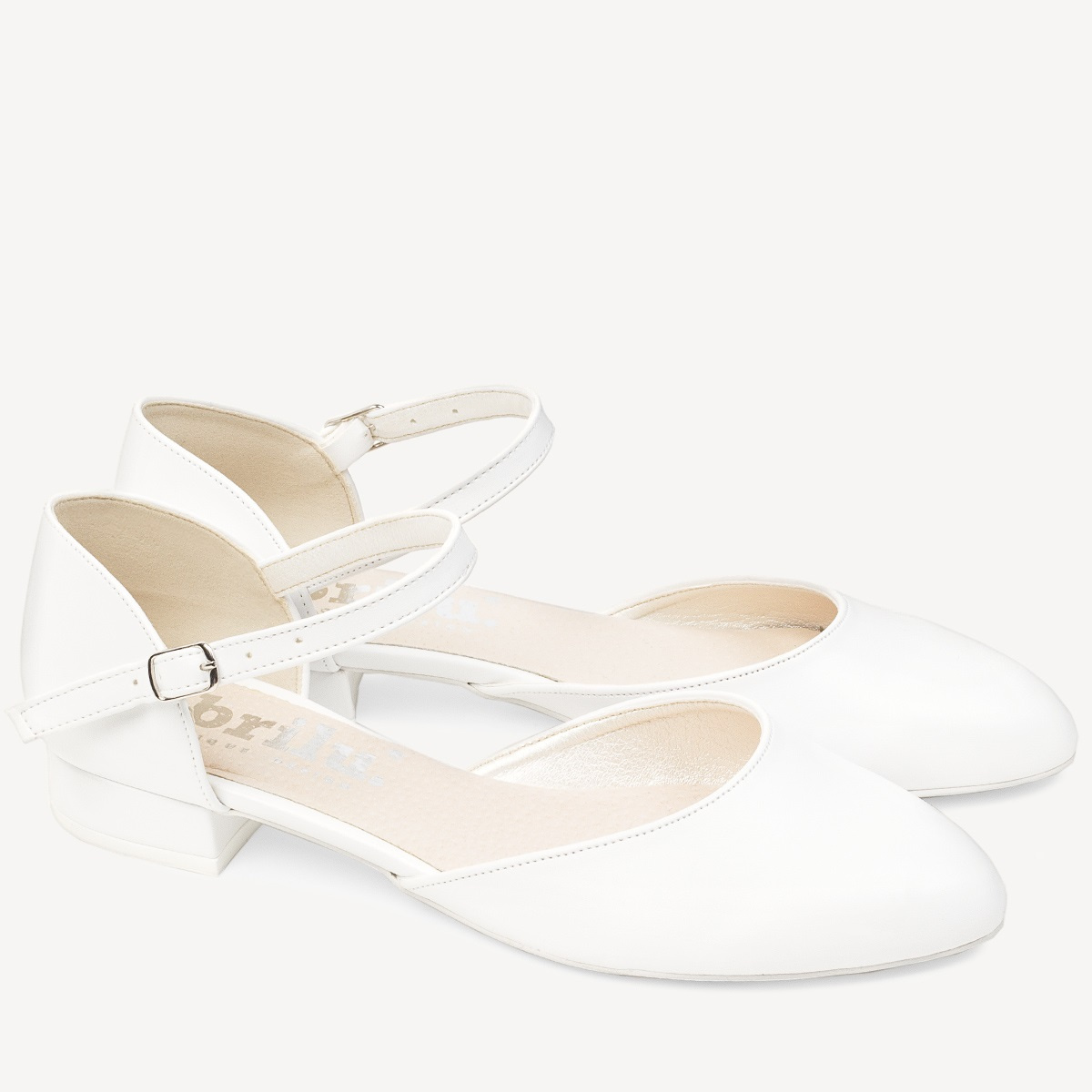 Białe, ślubne licowe balerinki z paskiem Angelica - idealnie nie tylko do tradycyjnych stylizacji ślubnych