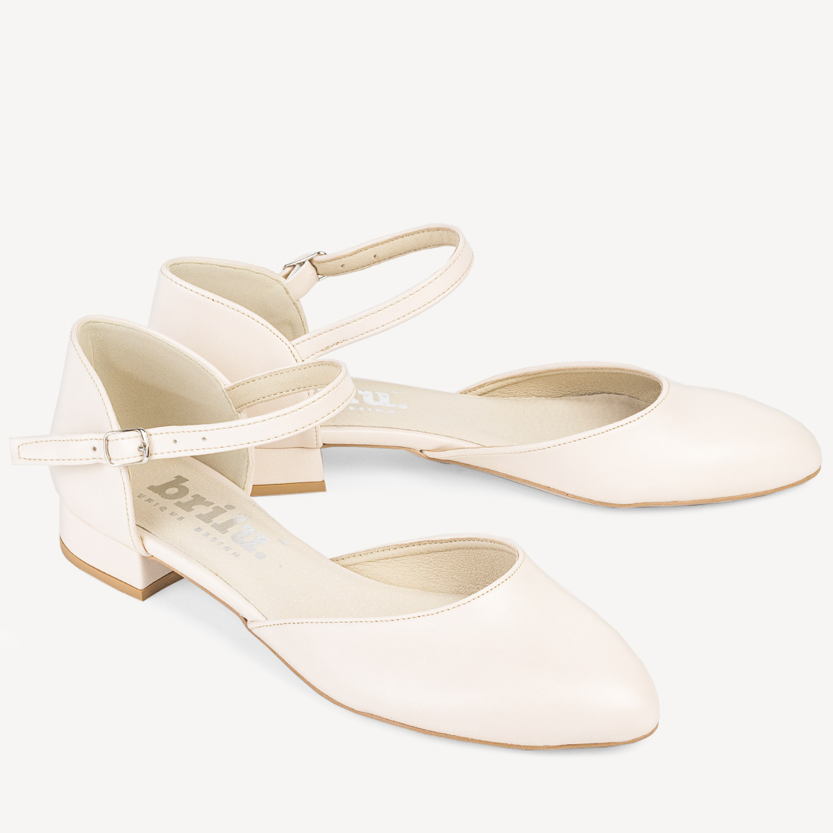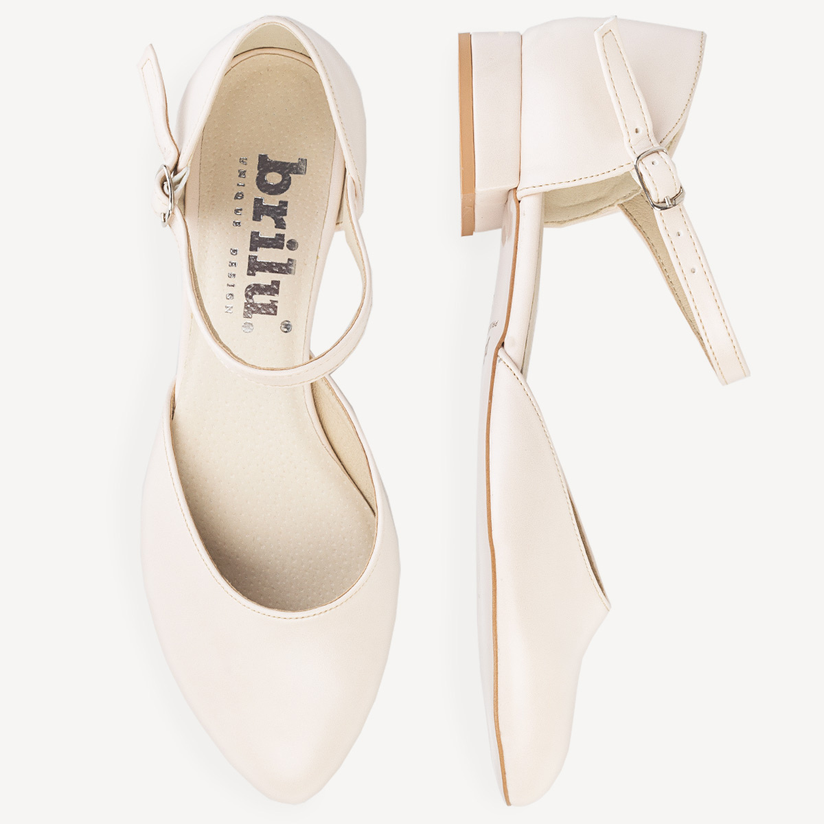 Ślubne licowe balerinki z paskiem Angelica cieliste ecru