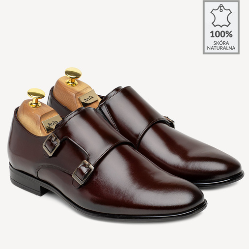 Skórzane półbuty wizytowe monki Allan w kolorze bordowym - coś dla mężczyzn lubiących ekstrawaganckie stylizacje