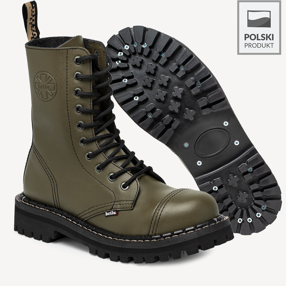 Zielone skórzane glany 10 oczek - jakość, której możesz zaufać