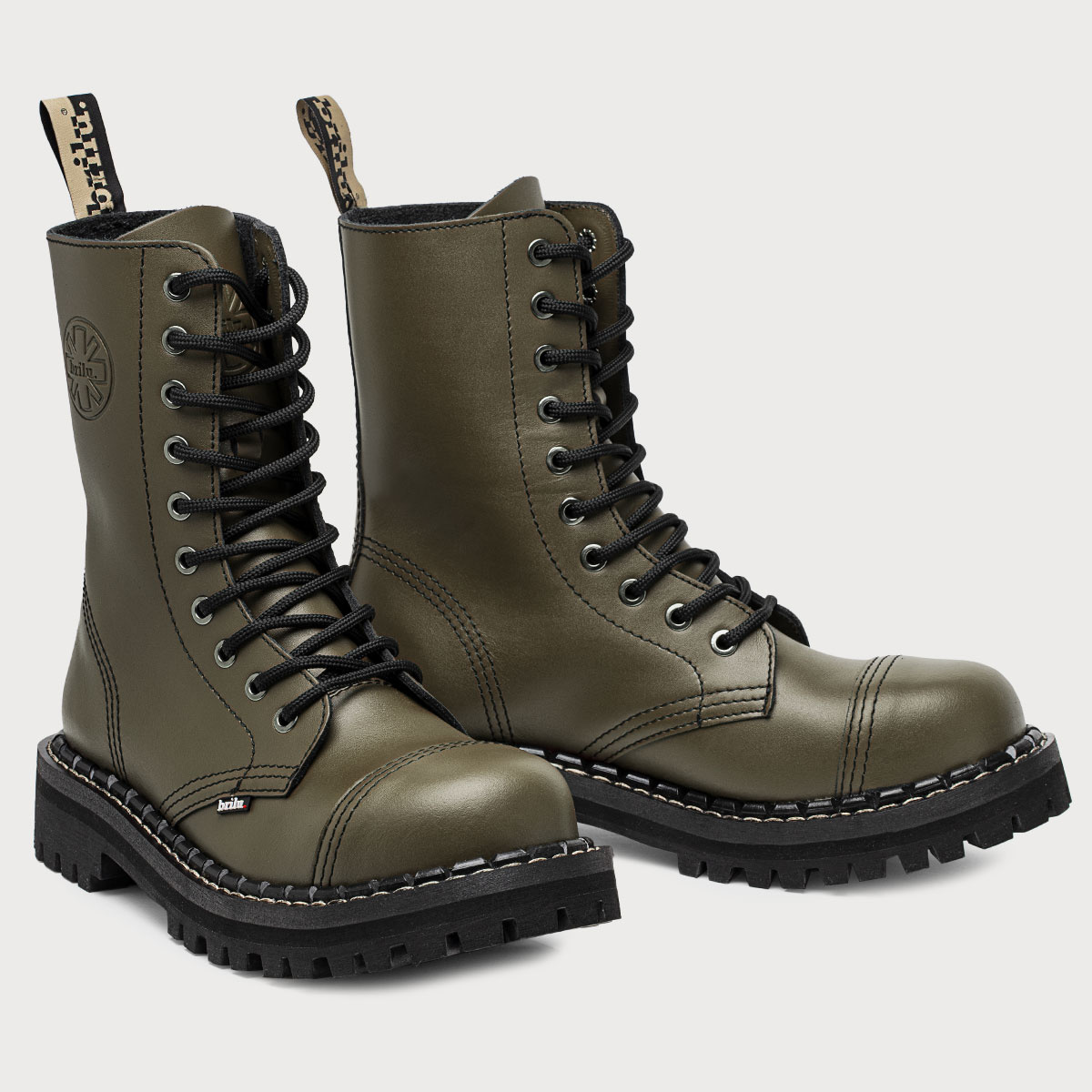 Skórzane glany BRILU wysokie 10-dziurek zielone