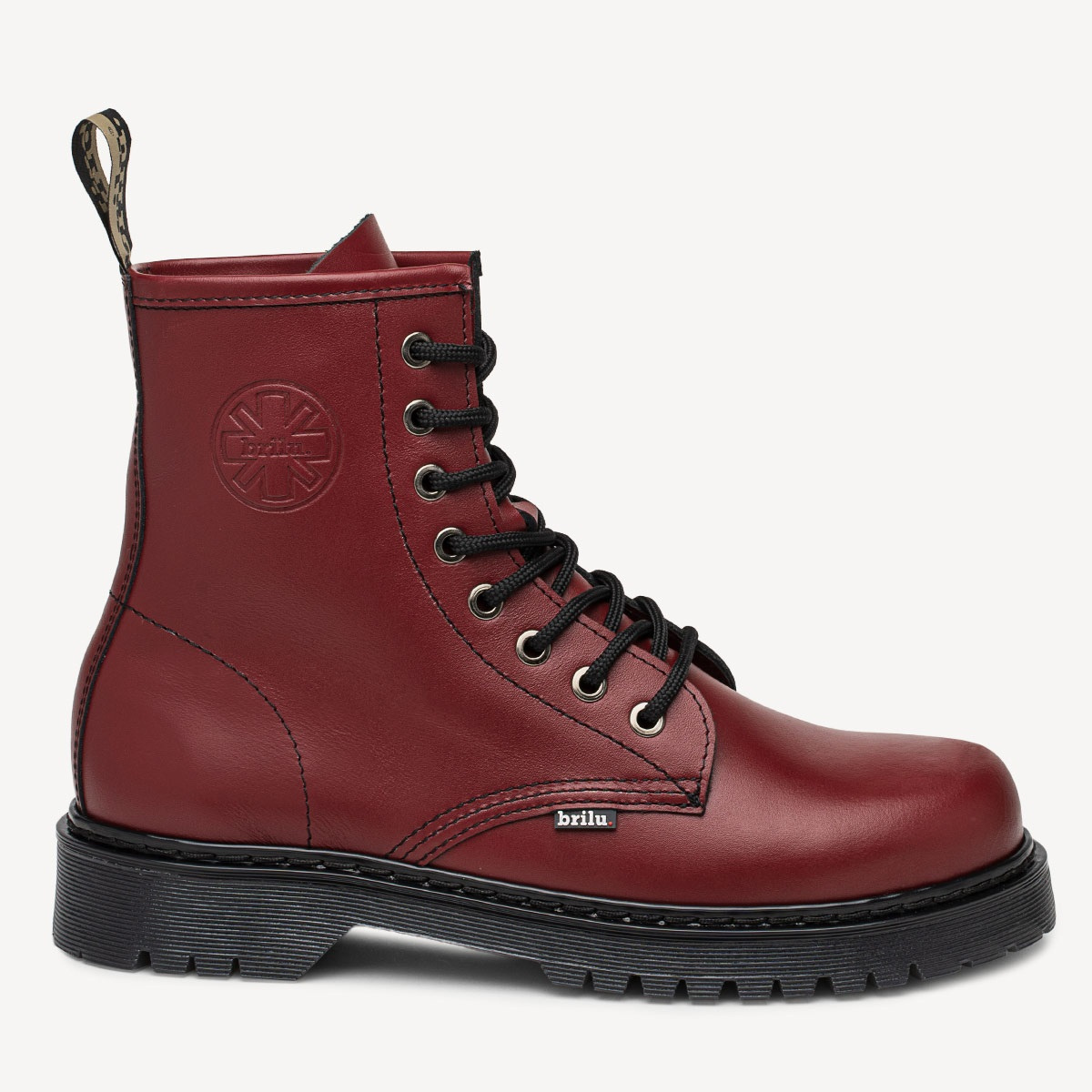 Skórzane glany BRILU wysokie 8-dziurek kauczukowy spód bordowe