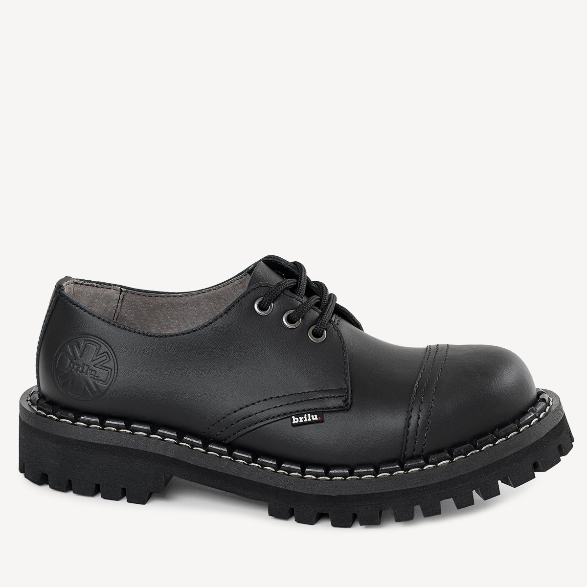 Skórzane glany BRILU niskie 3-dziurki czarne
