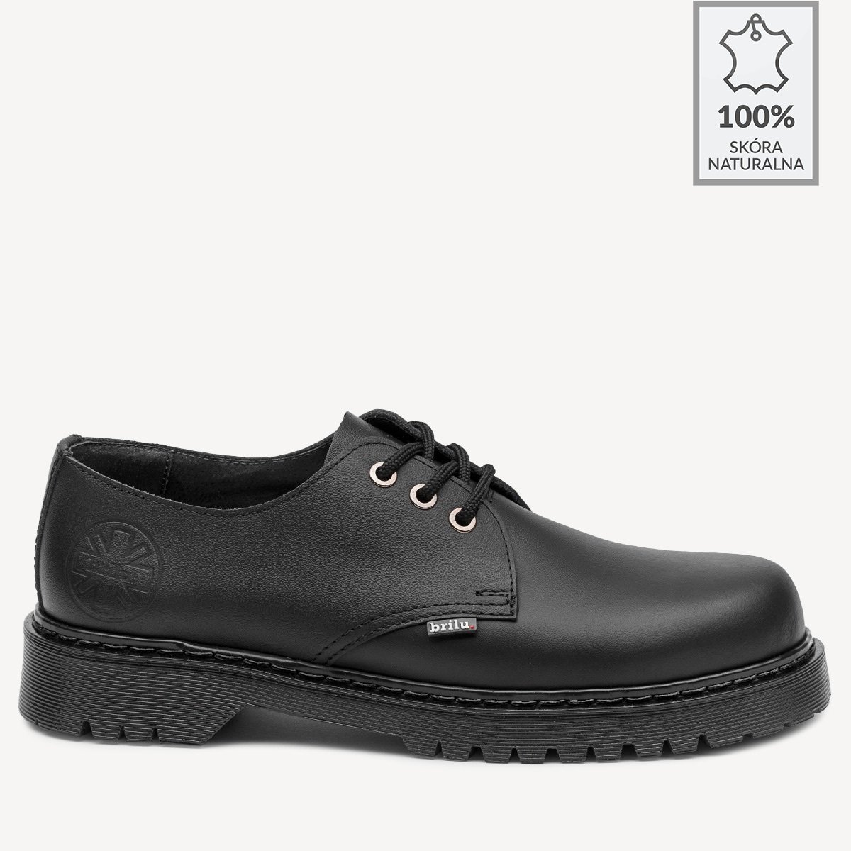 Skórzane glany BRILU niskie 3-dziurki kauczukowy spód czarne