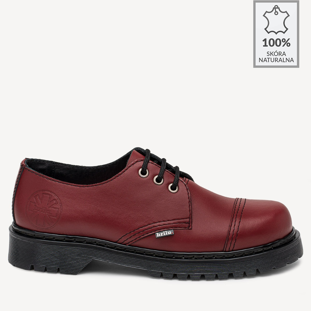 Skórzane glany BRILU niskie 3-dziurki kauczukowy spód bordowe