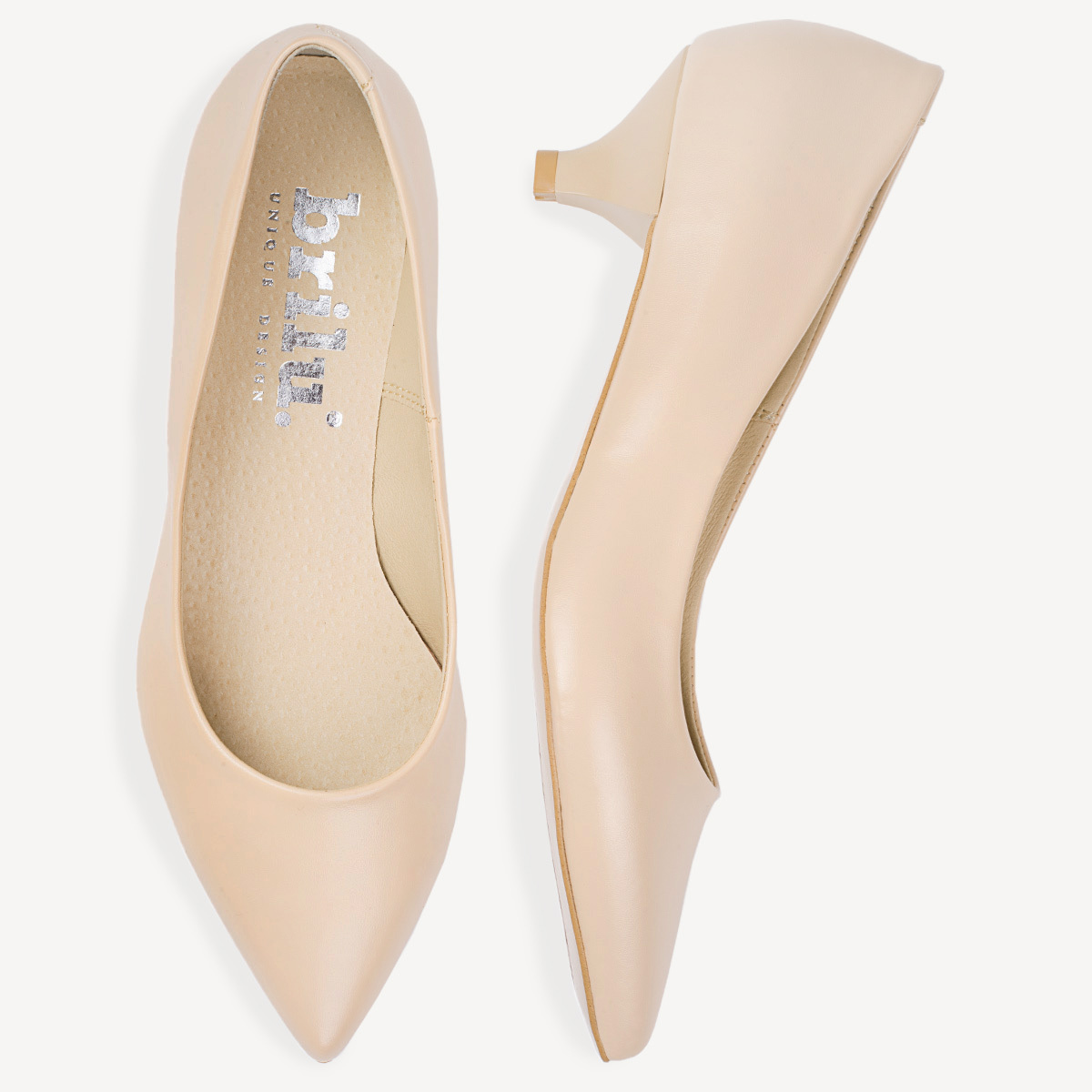 Beżowe klasyczne licowe szpilki na niskim obcasie Nelda - elegancja na najwyższym poziomie…
