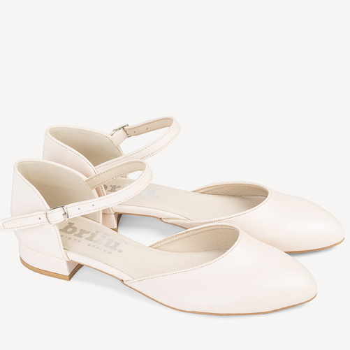Ślubne licowe balerinki z paskiem Angelica cieliste ecru
